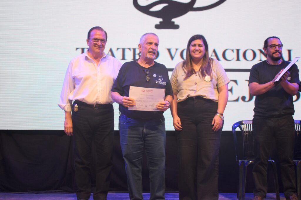 Al concluir la obra, la doctora Sonia Espina y Manuel «Lito» Zampar subieron al escenario para otorgar un merecido reconocimiento a Carlos Ginocchi por su destacada participación en la quinta edición de la Feria del Libro de Goya. Ambos representantes de la municipalidad expresaron su agradecimiento y reconocimiento a Ginocchi por su valioso aporte al mundo de la cultura y las artes en la región.