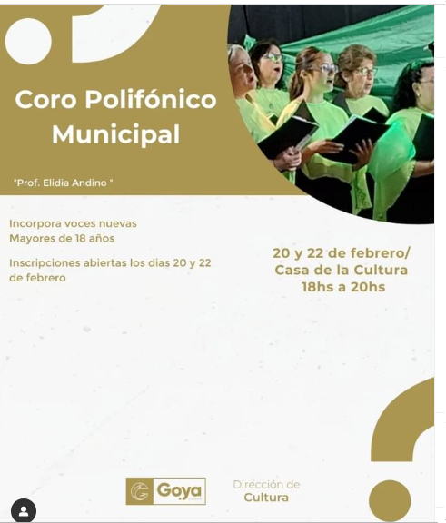 Casa de la Cultura Juan Esteban Martínez 365, Goya, CorrientesInscripciones: Lunes a Viernes de 14Hs a 18 Hs. Casa de la Cultura