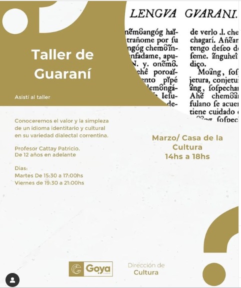 Casa de la Cultura Juan Esteban Martínez 365, Goya, CorrientesTaller de Guaraní