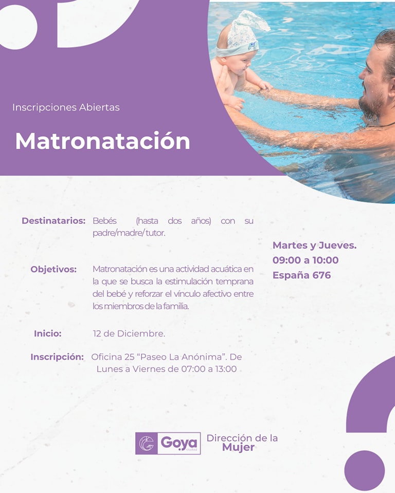 Actividad acuática para bebes y tutores. Lugar de Inscripción: Oficina 25 Paseo La Anónima